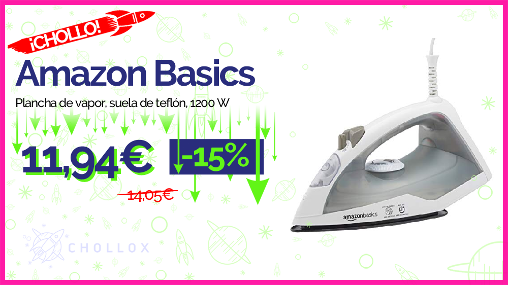 π₯πAmazon Basics - Plancha de vapor, suela de teflΓ³n, 1200 W #Amazon