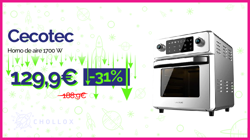 💥🔉Cecotec - Horno de aire 1700 W, Capacidad 14 Litros #Amazon