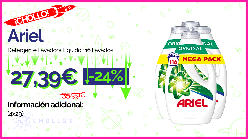 💥🔉Ariel Detergente Lavadora Liquido 116 Lavados (4x29) #Amazon