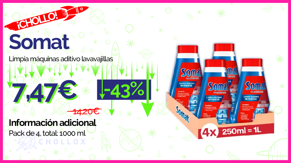 💥🔉Somat - Limpia máquinas aditivo lavavajillas (pack de 4, total: 1000 ml) #Amazon