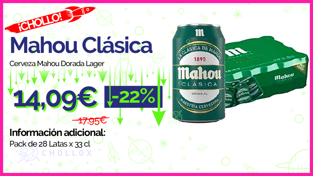 💥 🔉 Mahou Clásica Original - Cerveza Mahou Dorada Lager, Pack de 28 Latas x 33 cl #Amazon