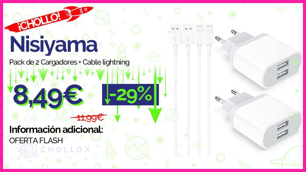 💥 🔉 Nisiyama - Pack de 2 Cargadores + Cable lightning #Amazon