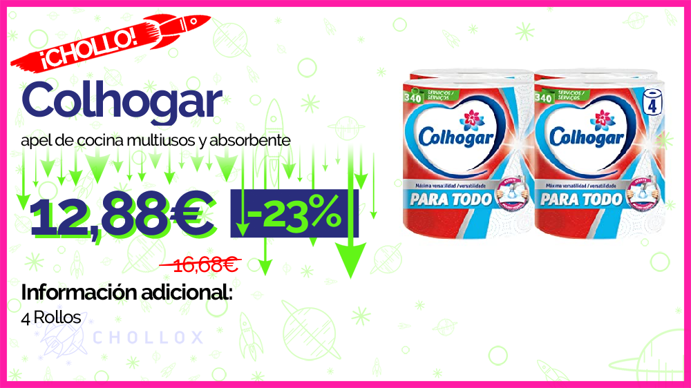 💥 🔉 Colhogar Paratodo Maxirolls 4x1 - Papel de cocina multiusos y absorbente - 4 Rollos #Amazon