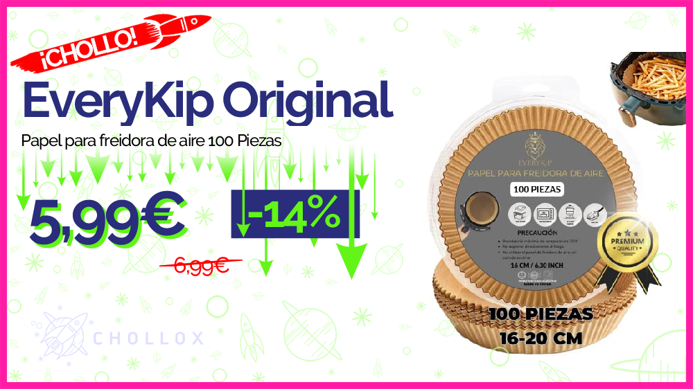💥 🔉 EveryKip - Papel para freidora de aire 100 Piezas #Amazon