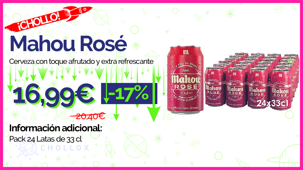 💥 🔉 Mahou Rosé - Cerveza con toque afrutado y extra refrescante, Pack 24 Latas de 33 cl #Amazon