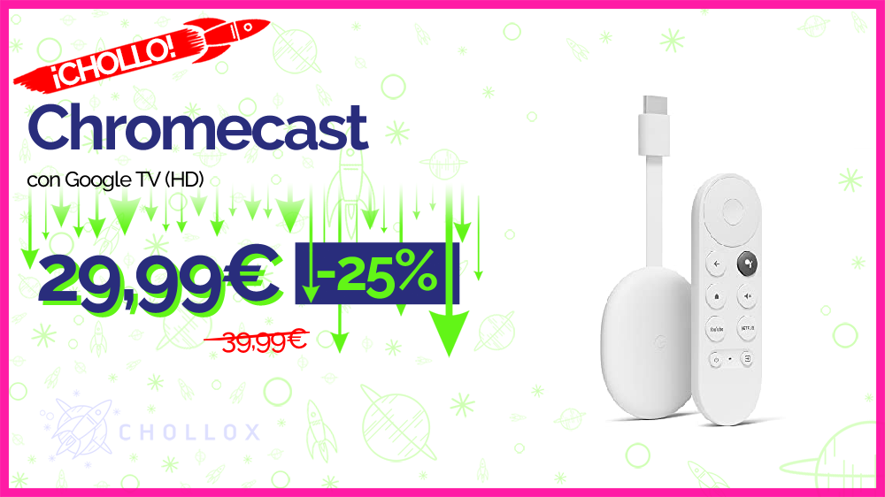 💥 🔉 Chromecast con Google TV (HD) - Reproduce contenido en streaming en el televisor con el mando de control por voz - Películas, series en HD #Amazon