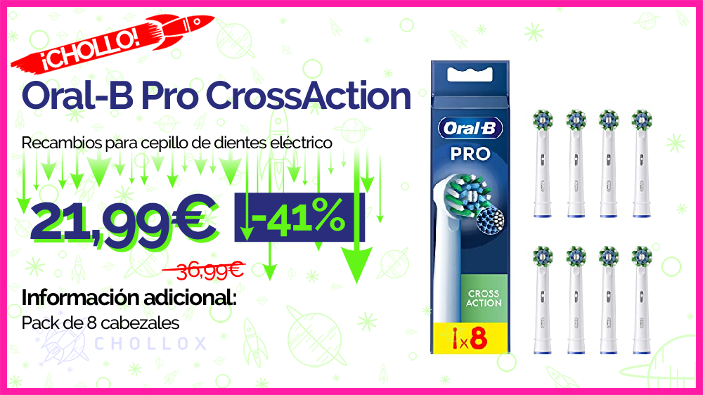 💥 🔉 Oral-B Pro CrossAction - Recambios para cepillo de dientes eléctrico, Pack de 8 cabezales #Amazon