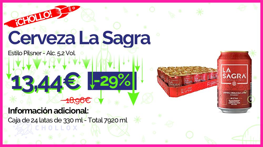 💥 🔉 La Sagra - Cerveza Lager estilo Pilsner - Alc. 5,2 Vol. - Caja de 24 latas de 330 ml - Total: 7920 ml #Amazon