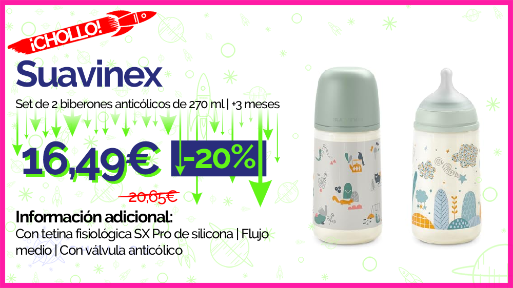💥 🔉 Suavinex - Set de 2 biberones anticólicos de 270 ml | +3 meses #Amazon
