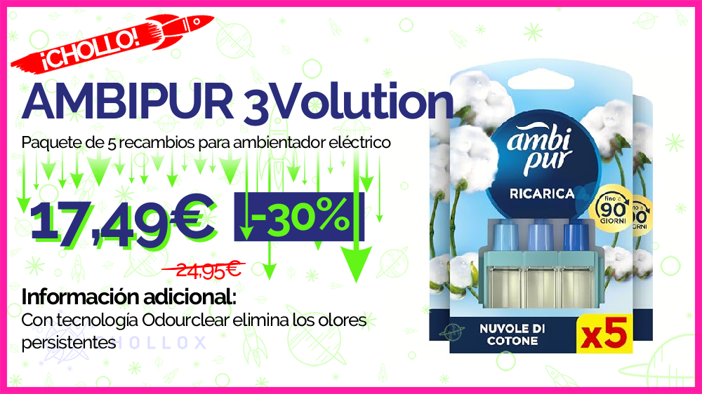 💥 🔉 AMBIPUR 3Volution - Paquete de 5 recambios para ambientador eléctrico | Nubes de algodón #Amazon