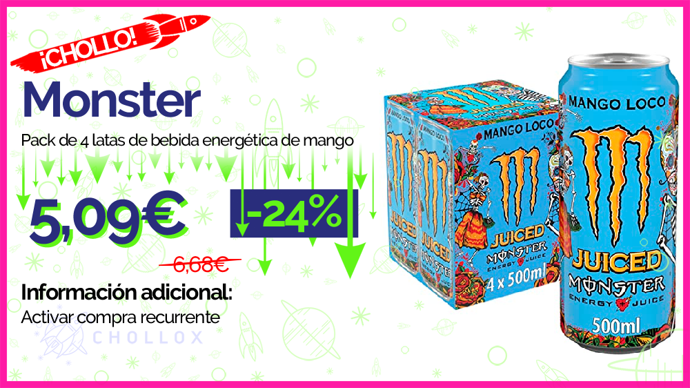 💥 🔉 Monster - Pack de 4 latas de bebida energética de mango #Amazon