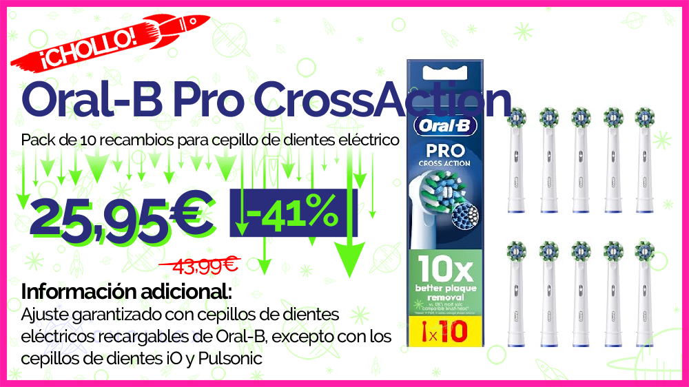 💥 🔉 Oral-B Pro CrossAction - Pack de 10 recambios de cabezales para cepillo de dientes eléctrico #Amazon