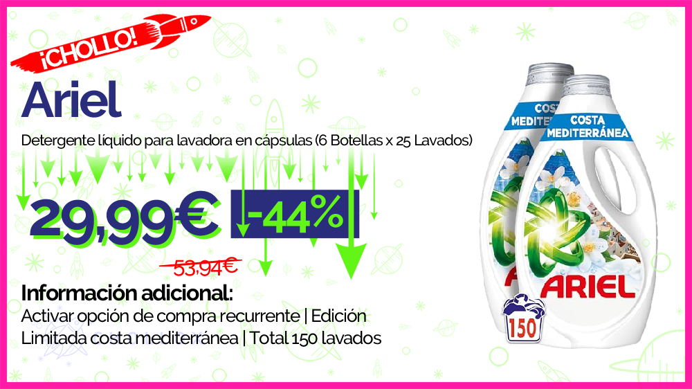 💥 🔉 Ariel - Detergente líquido para lavadora en cápsulas (6 Botellas x 25 Lavados) #Amazon