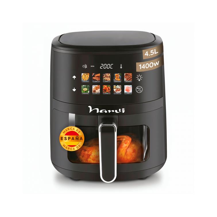 ✨ La freidora de aire NARVI NF27 ofrece una cocción saludable sin aceite gracias a su capacidad de 4.5 litros y potencia de 1400W. Cuenta con una ventana visible para controlar el proceso de cocción y un panel digital táctil que facilita su uso. Además, dispone de 10 programas automáticos para diferentes tipos de alimentos y tecnología de cocción 360° que asegura una distribución uniforme del calor. ‼️ Chollazo ‼️