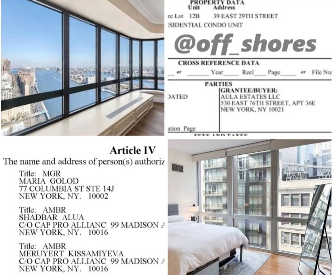 Обе квартиры были оформлены через нью-йоркскую фирму Aula Estates LLC. В 2023 году дочь и жена Нурлана Шабдара ее ликвидировали и открыли одноименную структуру во Флориде (ее они закрыли в апреле прошлого года). Судя по данным реестра недвижимости Нью-Йорка, никакой смены собственников за этот период не происходило. Это указывает на то, что Меруерт Кисамиева и Алуа Шабдар по-прежнему остаются владелицами этой недвижимости. К слову, созвучное название американским фирмам носит и семейная компания Шабдарбаевых в Казахстане — Alua. Учитывая это, мы можем предположить, что опечатка в фамилии дочери Нурлана Шабдара в регистрационных документах фирмы во Флориде (ShaDbar, а не ShaВdbar) не была случайностью, а преследовала цель затруднить поиск в американских реестрах. Но мы их все равно нашли.