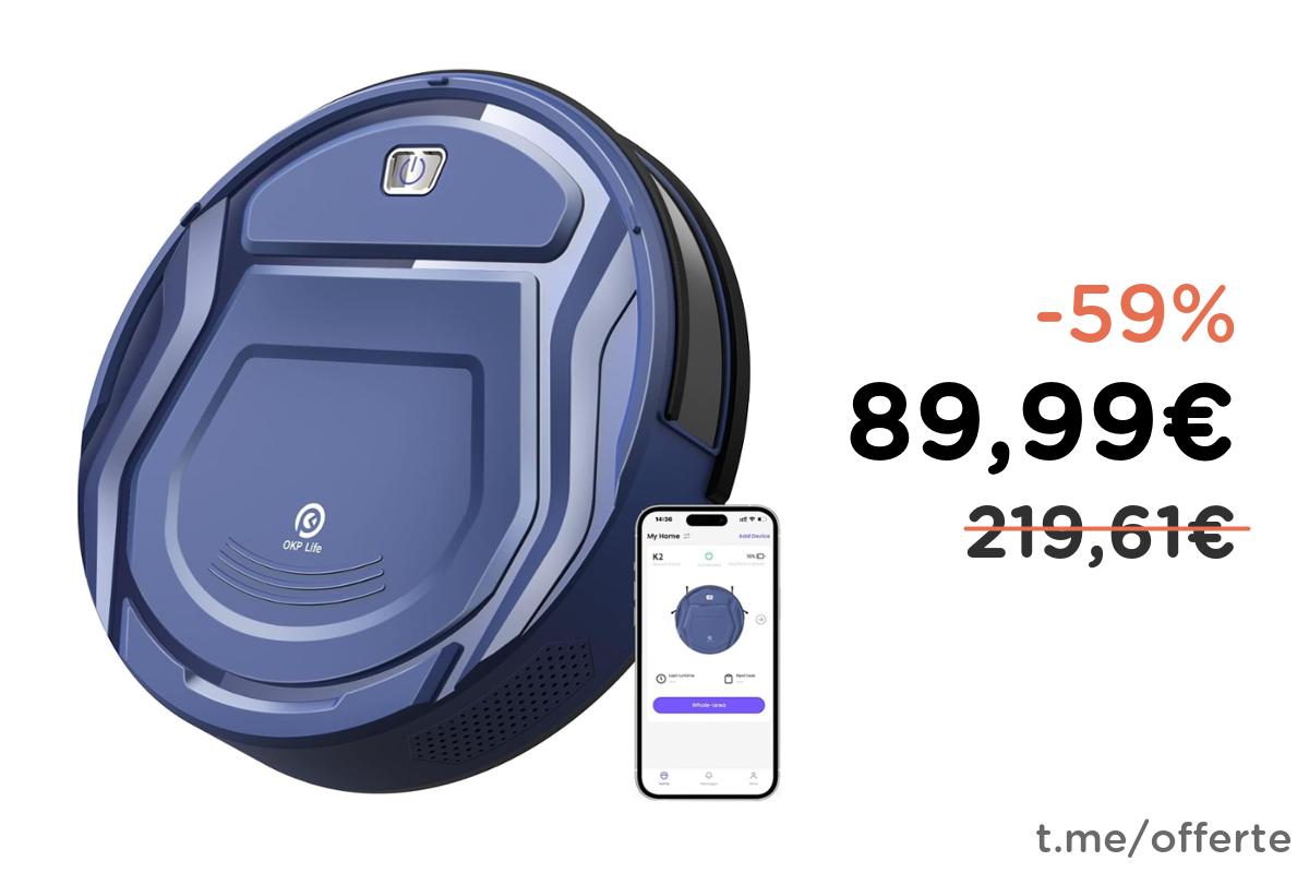 π OKP Robot Aspirapolvere K2, 2100Pa, 120 Minuti, WiFi, Blu