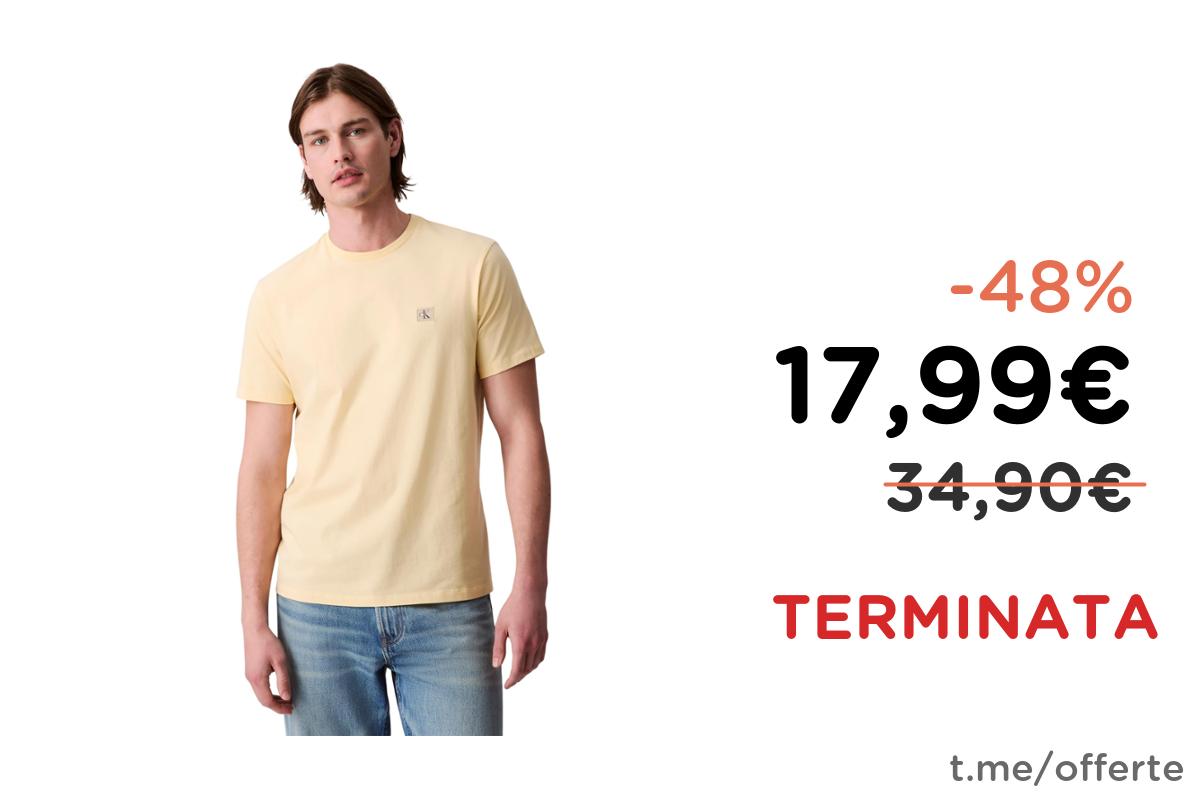 ๐ Calvin Klein T-Shirt Maniche Corte in Cotone, Giallo, M