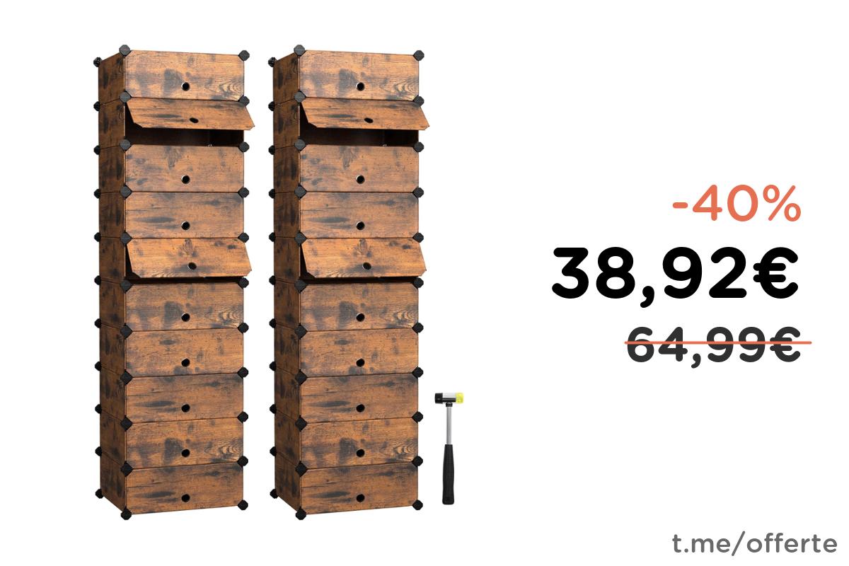 ๐ SONGMICS Scarpiera a 10 Scomparti, Set di 2, Mobiletto Fai da Te
