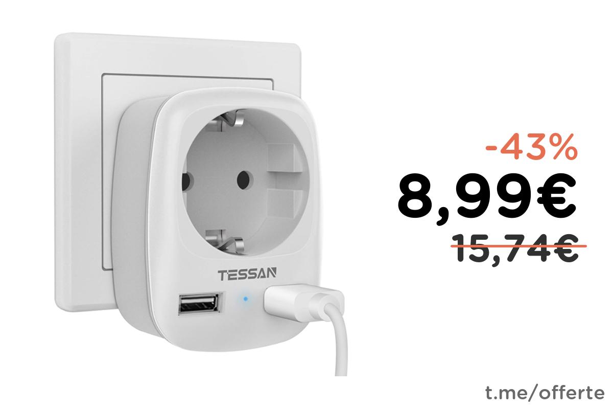 π TESSAN Multipresa Salvaspazio 1 Spina Europea e 2 USB