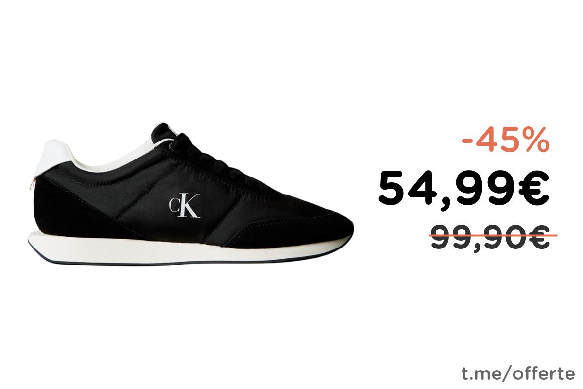 π Calvin Klein Uomo Sneakers Running Retro Mix, Nero, 39