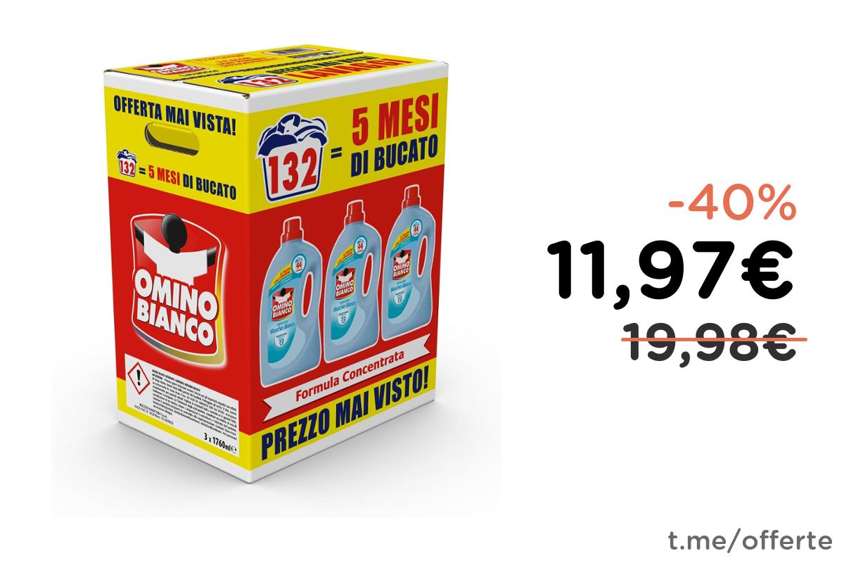 π§Ό Omino Bianco - Detersivo Lavatrice Liquido, 132 Lavaggi, 3 Confezioni da 1760 ml, Rispetta Colori