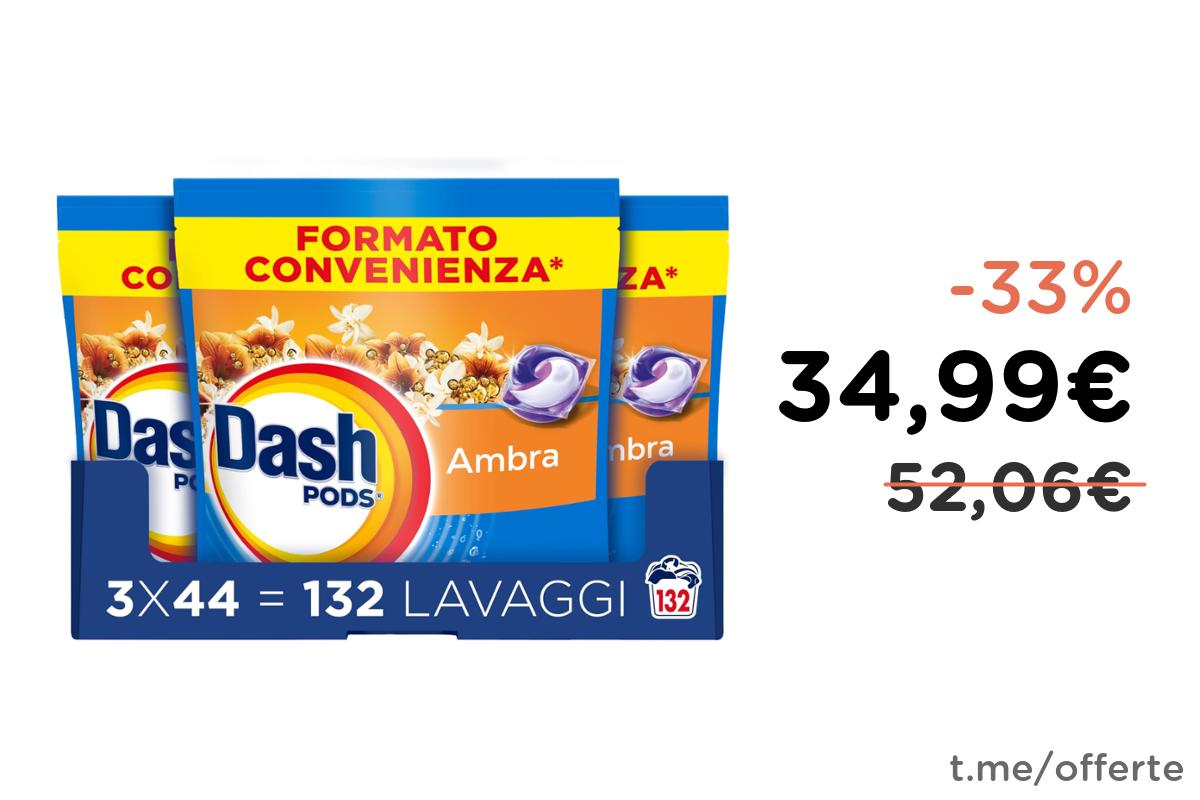 π§Ί Dash Pods Detersivo Lavatrice In Capsule, 132 Lavaggi (3x44), Gusto Ambra