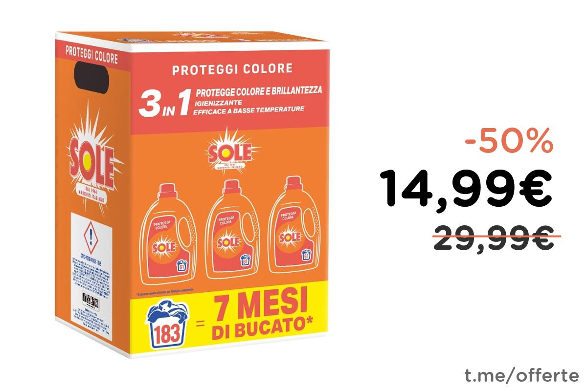 π§Ό Sole Detersivo Lavatrice Proteggi Colore 183 Lavaggi Formula igienizzante
