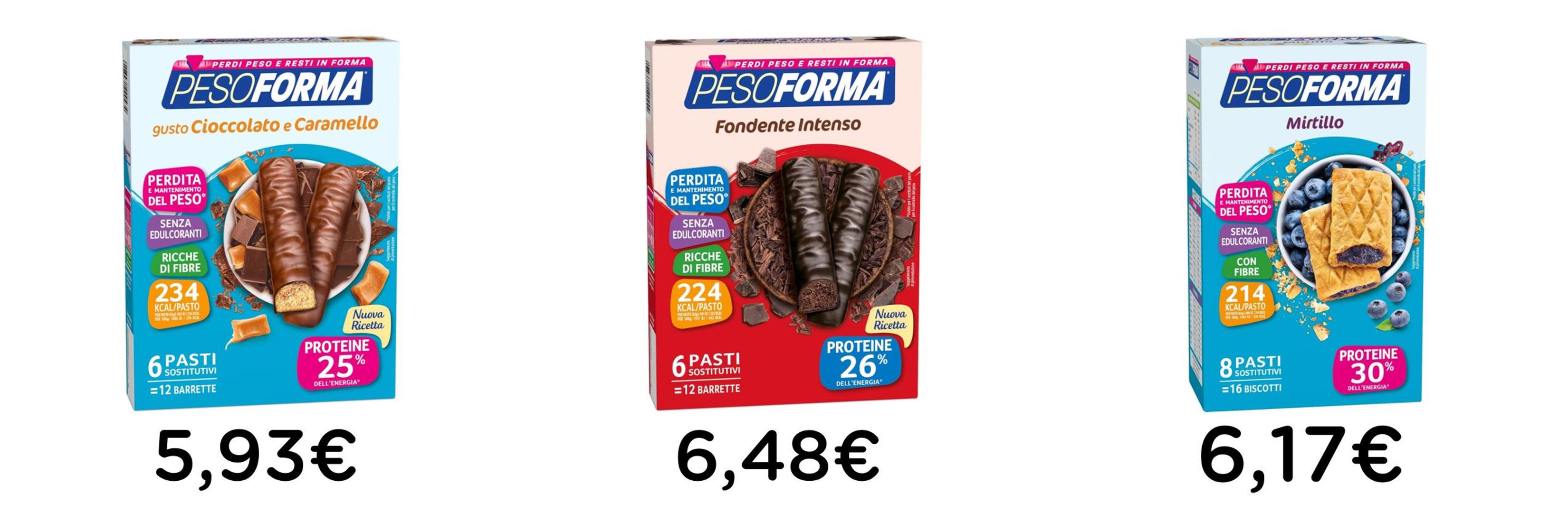 πΈ PESOFORMA BARRETTE CIOCCOLATO E CARAMELLO, 12x31g, pasto sostitutivo