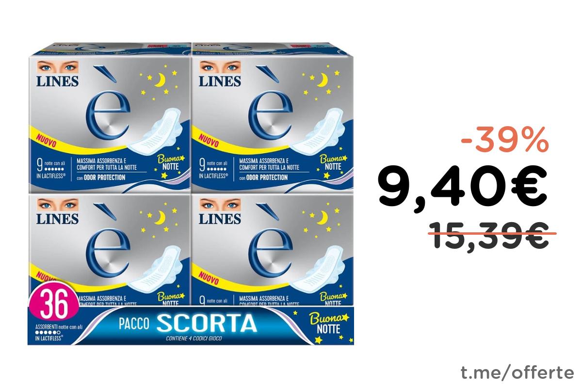 π©Έ LINES Γ NOTTE 36 assorbenti con ali in Lactifless per ciclo