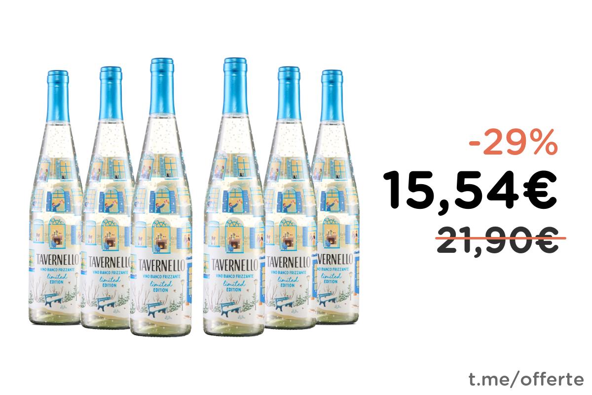 π· Tavernello Vino Bianco Frizzante, 6 Bottiglie da 750 ml, Gusto Asciutto
