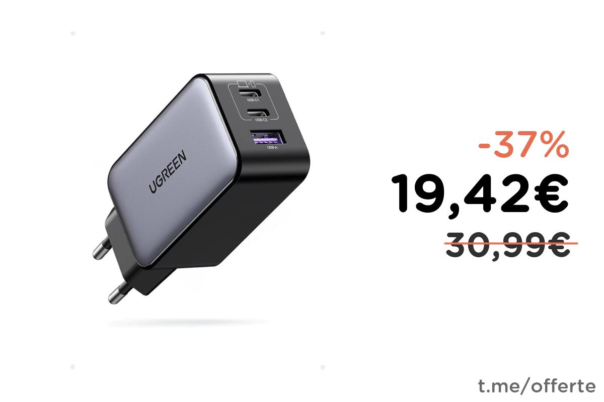 ๐ UGREEN Nexode 65W Caricatore USB C, 3 porte, ricarica rapida