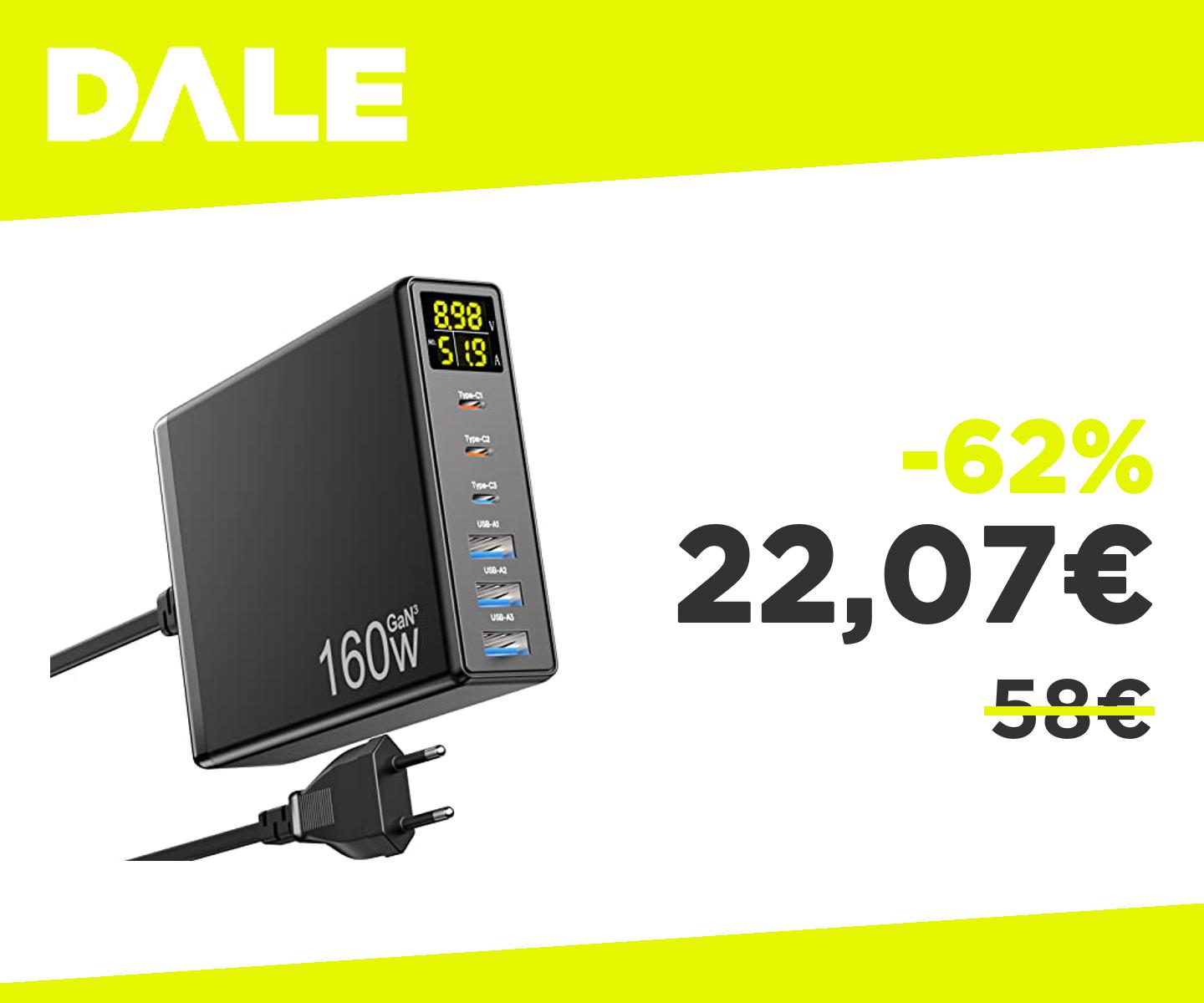 ๐๐ป Caricatore USB C, 160W GaN 6-Port Caricabatterie USB C Rapido con Display a LED, stazione di ricarica usb multipla mit 3 USB-C e 3 USB-A PPS PD 3.0 Charger fรผr MacBook Pro Laptop iPhone iPad Samsung