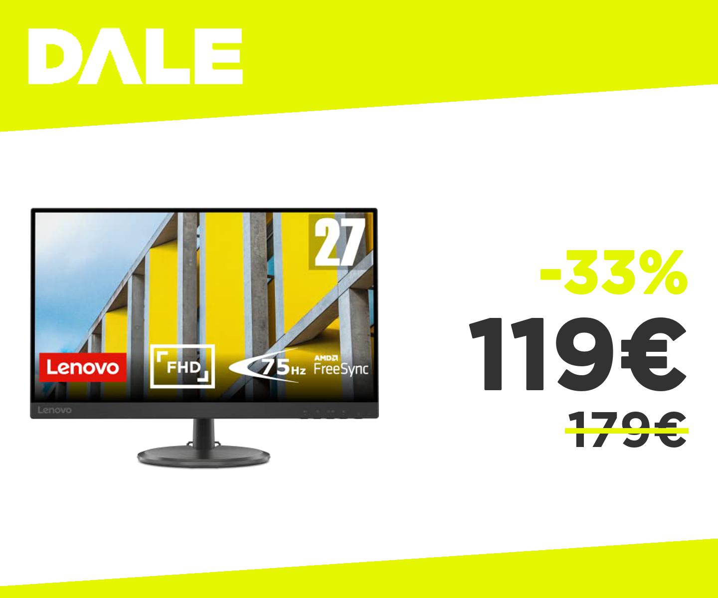 ๐๐ป Lenovo D27-30 Monitor - Display 27" Full HD, VA (1920x1080, 75Hz, 4 ms, AMD FreeSync, Input HDMI+VGA, Cavo HDMI)