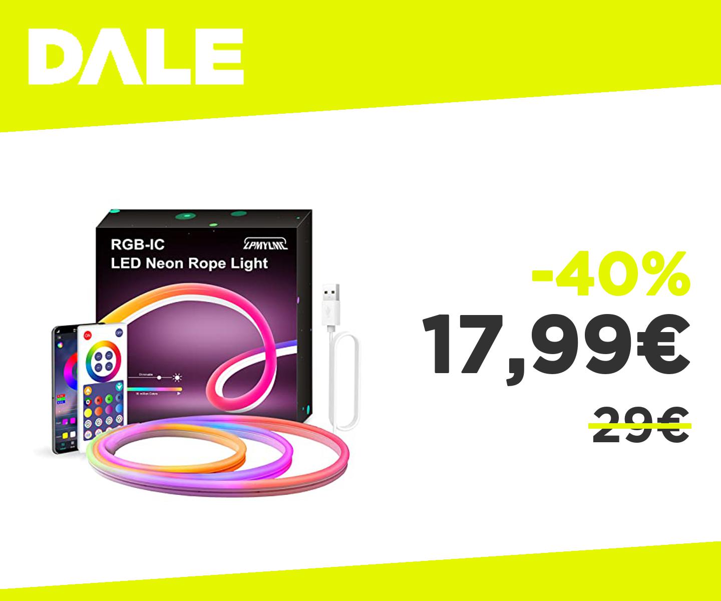 ๐๐ป LPDISPLAY RGBIC Neon Strisica LED 3m Sincronizzazione di musica, Striscia Luminosa Colorosa Fai-da-Te, Funziona con Alexa e Google Assistant, 3m Neon Striscia Led