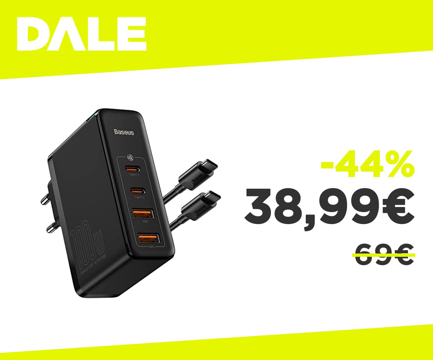 ๐๐ป Baseus Caricatore USB C 100W, 4 Porte PD PPS GaN Caricatore Multiplo Caricabatterie USB C Alimentatore USB C Compatibile con MacBook Pro/Air, iPhone 15/14/13/12, iPad Pro, Samsung Galaxy S24 Ultra