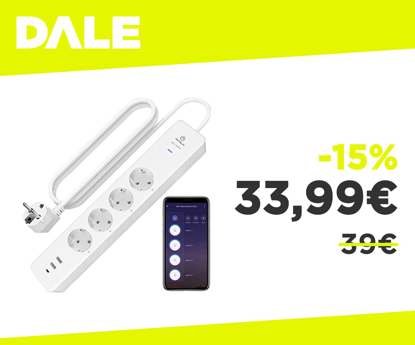 ๐๐ป Ciabatta MultiPresa Smart Alexa,Monitoraggio Energetico,Intelligente Wifi(Solo 2,4 GHz) con 4 Prese AC e 3 USB(2A+1C), Protezione da Sovraccarico 3680W 16A,Compatibile con Google Home