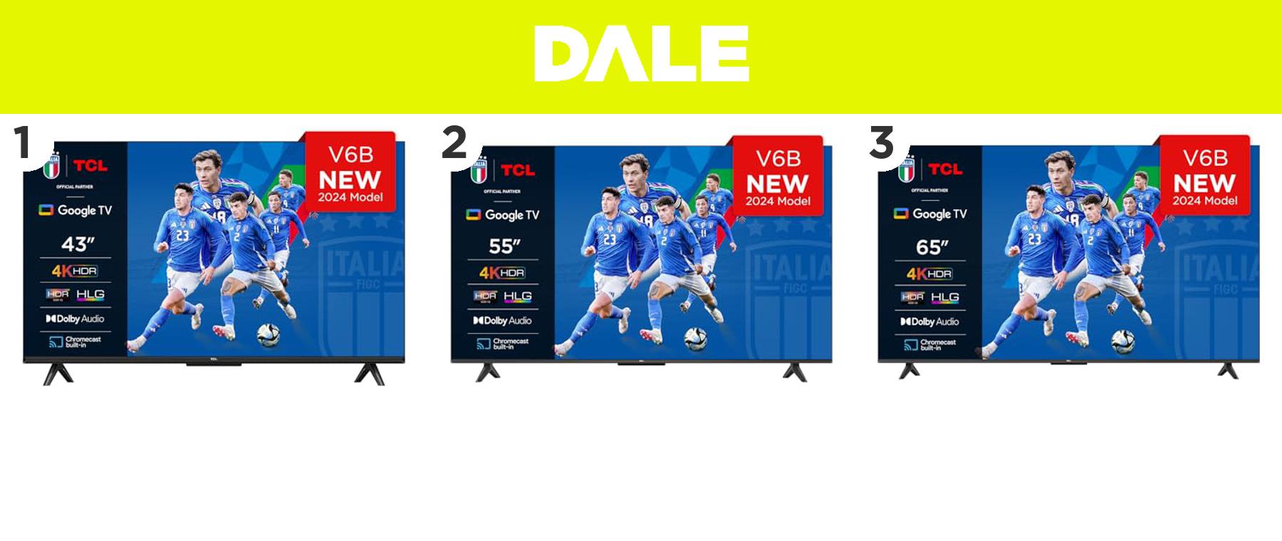 1) ๐๐ป TCL 43V6B TV 43โ, 4K HDR, Ultra HD, Google TV con design senza bordi, Dolby Audio, compatibile con Google Assistant e Alexa