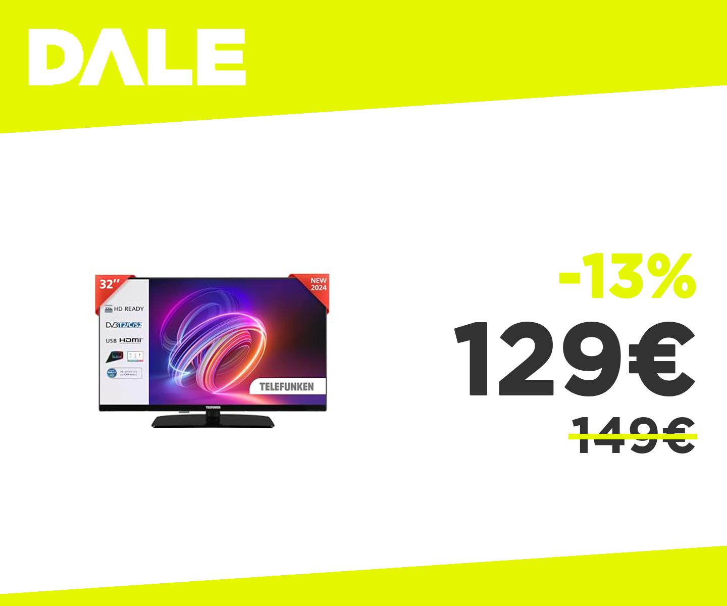 ๐๐ป Telefunken TV 32" HD Ready 32TENSHDZ, TV LED 32 Pollici, Digitale DVB-T2/C/S2, USB, HDMI, uscita audio digitale, Hotel Mode, 2024