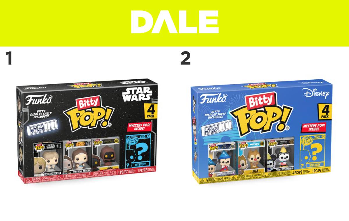 2) ๐๐ป Funko Bitty Pop! Disney - Sorcerer Mickey, Dale, Princess Minnie E una Mini Figura Misteriosa a Sorpresa - 0.9 Inch (2.2 Cm) da Collezione - Ripiano Espositivo Impilabile Incluso - Idea Regalo