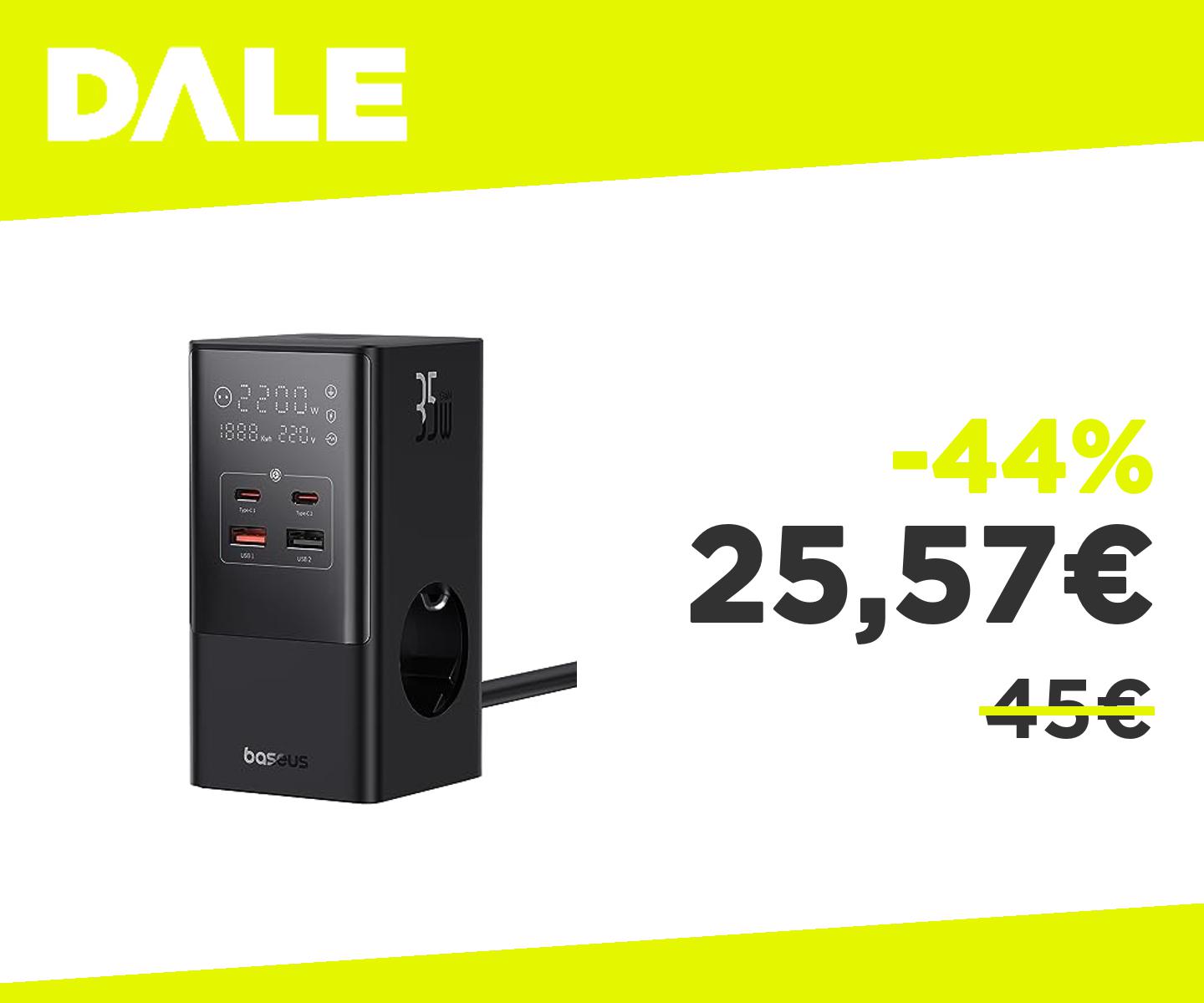 ๐๐ป Baseus GaN5 - Stazione di ricarica da 35 W, 3 prese con interruttore, 3 AC + 2 USB-C + 2 USB-A, caricatore portatile PD per MacBook, iPad, iPhone 15/14/13/12, Galaxy, la casa e lโufficio