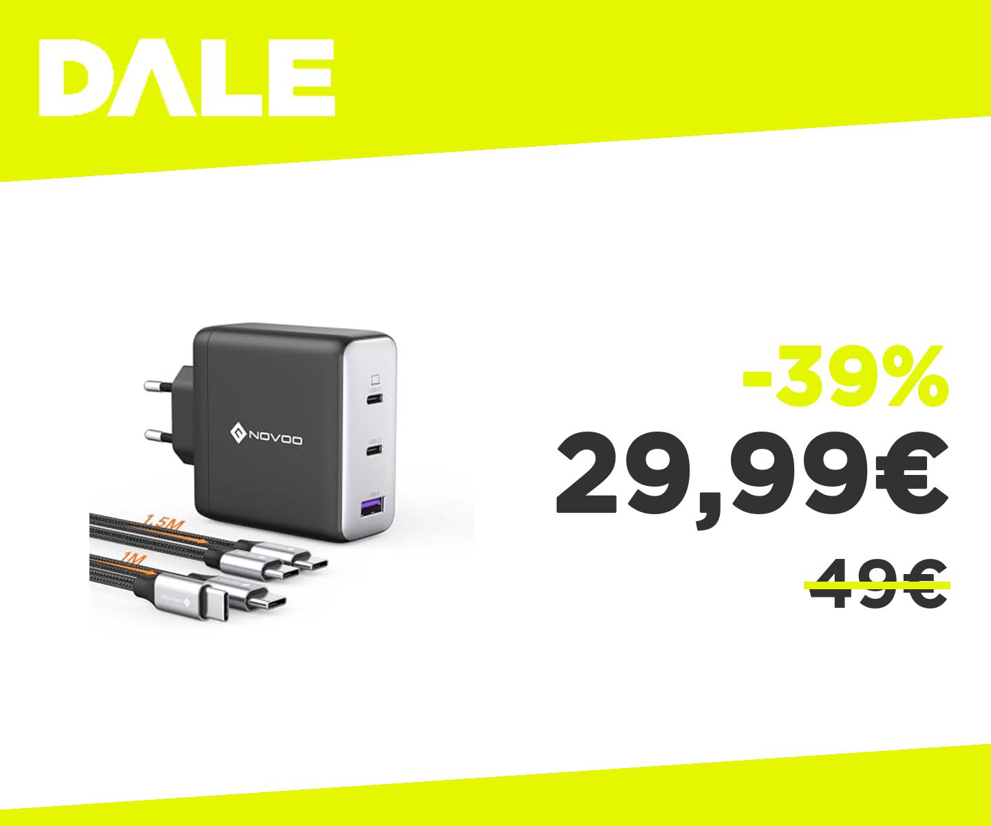 ๐๐ป NOVOO Caricabatterie USB C da 120W con 2 cavi PD 100W Type-C, Caricatore compatto PPS GaN III a 3 porte, per MacBook Pro 14'', Dell XPS 13, iPad Pro, iPhone 15, Galaxy S23, Note 20, Apple Watch