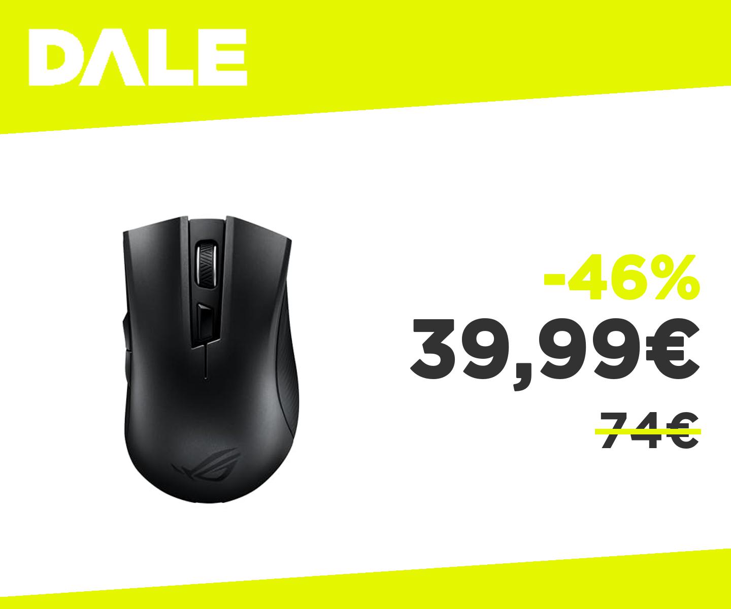 ๐๐ป ASUS ROG Strix Carry, Mouse Gaming Ottico, Ergonomico, Doppia Connettivitร Wireless 2,4 GHz e Bluetooth, Sensore Da 7200 dpi, Design Socket Switch ROG, Batteria a Lunga Durata, Nero