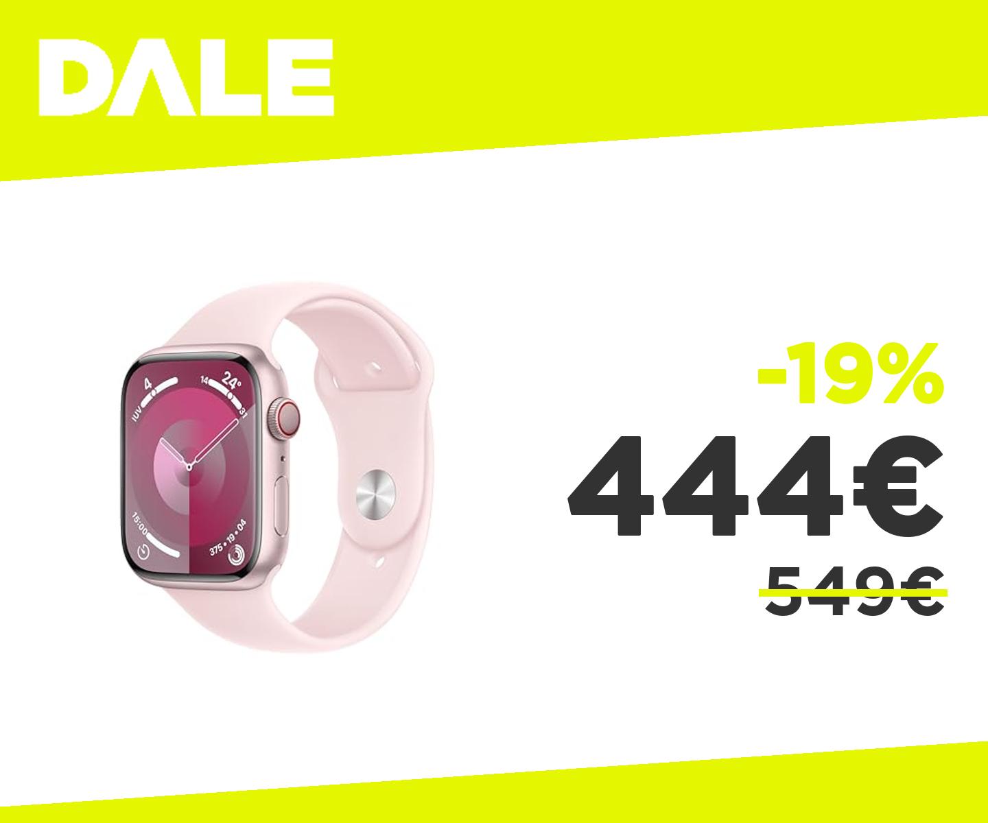 ๐๐ป Apple Watch Series 9 GPS + Cellular 45mm - Cassa Alluminio Rosa, Cinturino Sport Rosa, Fitness Tracker