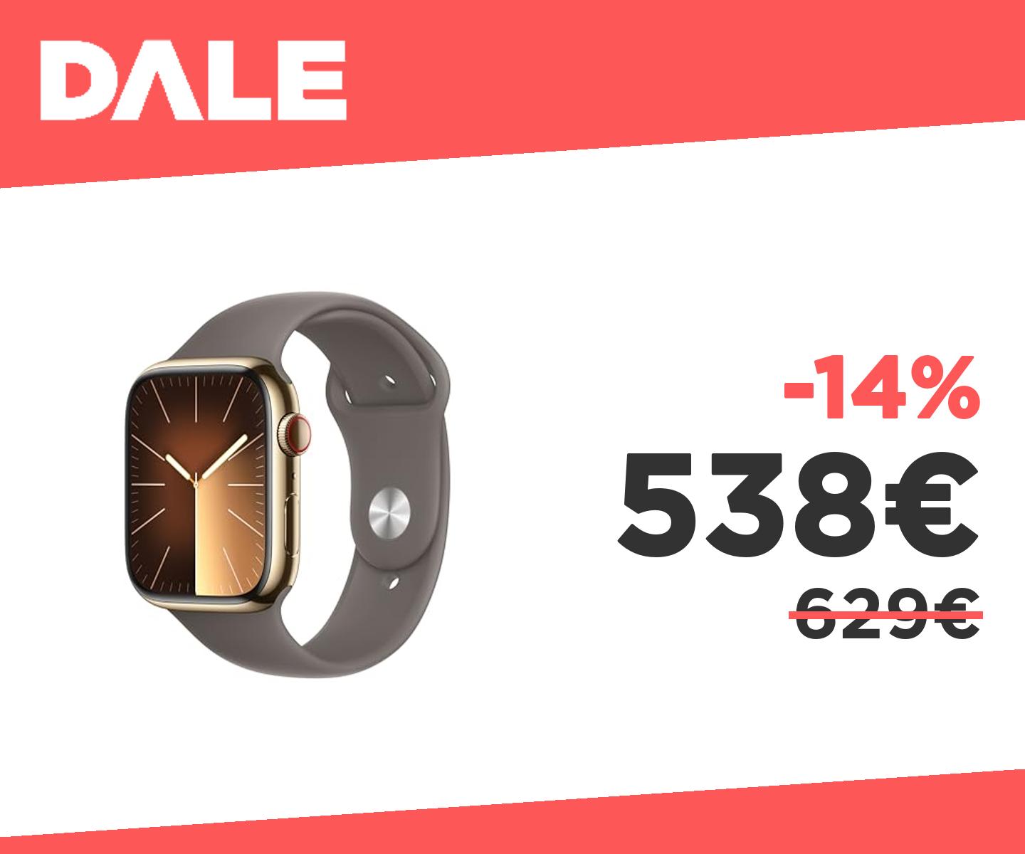 ๐ฃ Apple Watch Series 9 GPS + Cellular 45mm - Cassa in Acciaio Inossidabile Oro, Cinturino Sport Grigio
