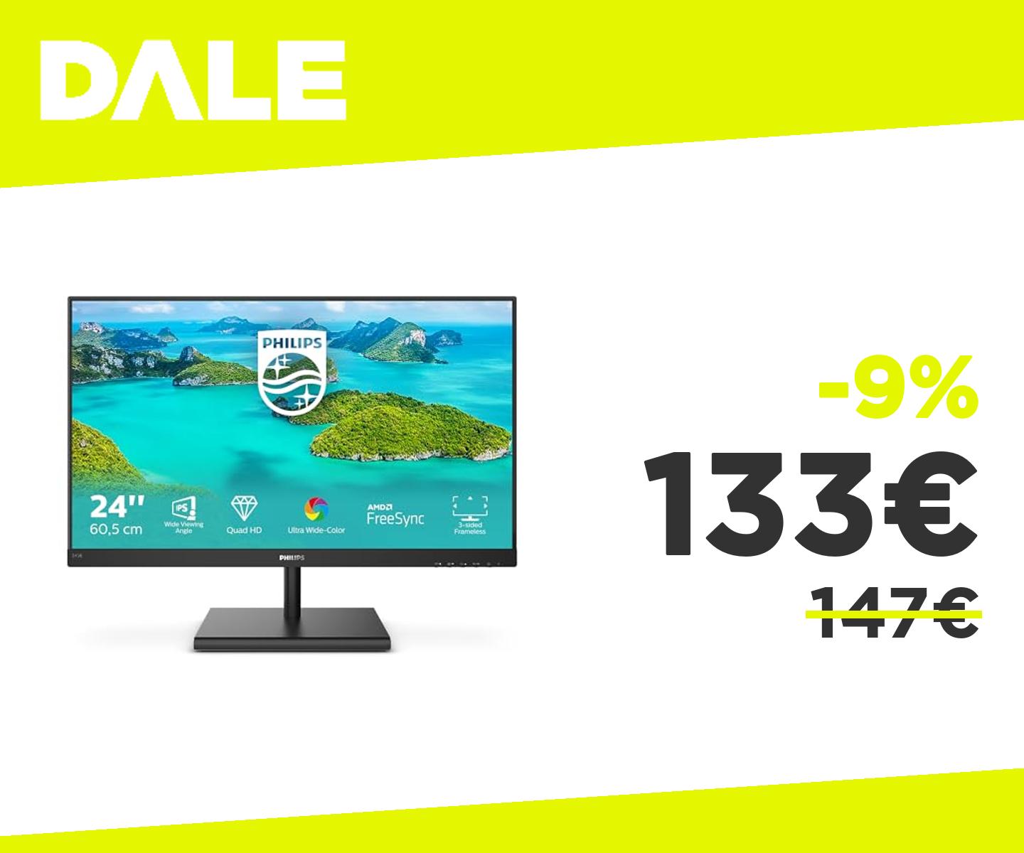 ๐๐ป PHILIPS 245E1S Monitor Gaming 24" LED IPS 2K Freesync 75 Hz, HDMI, Display Port, Flicker Free