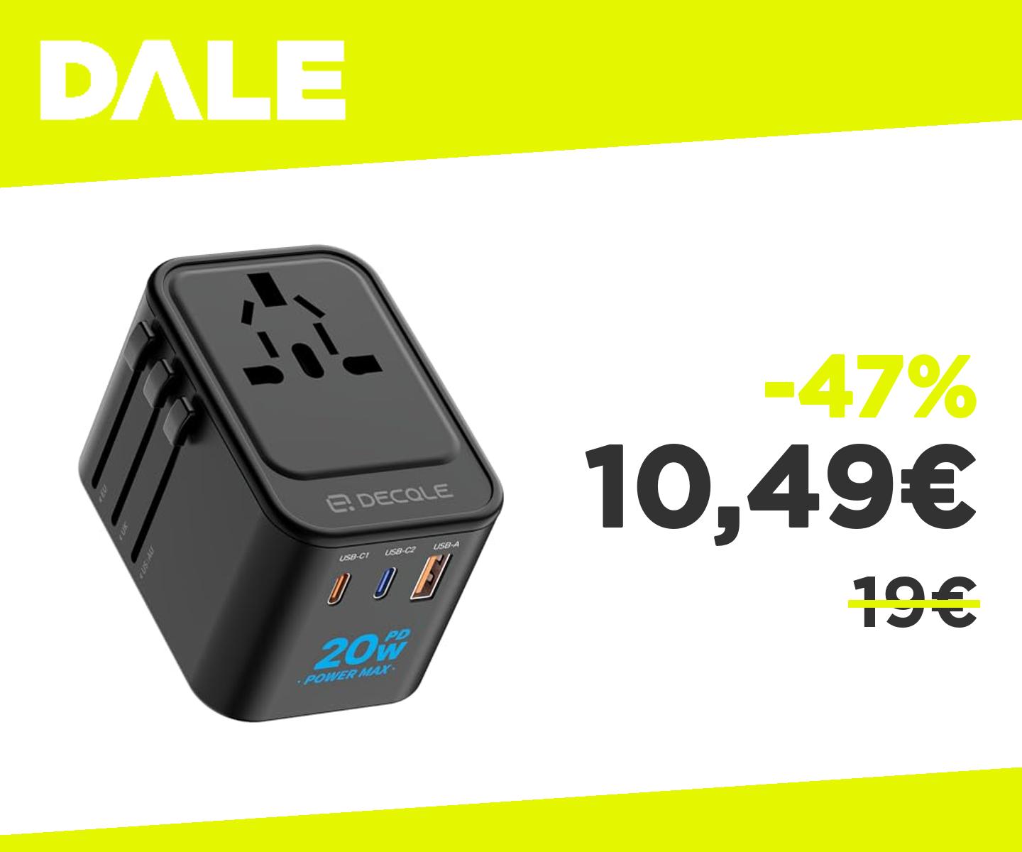 ๐๐ป Decqle Adattatore Universale da Viaggio 2000W con 2 USB-C (PD 20W) e 1 USB-A per 224 Paesi