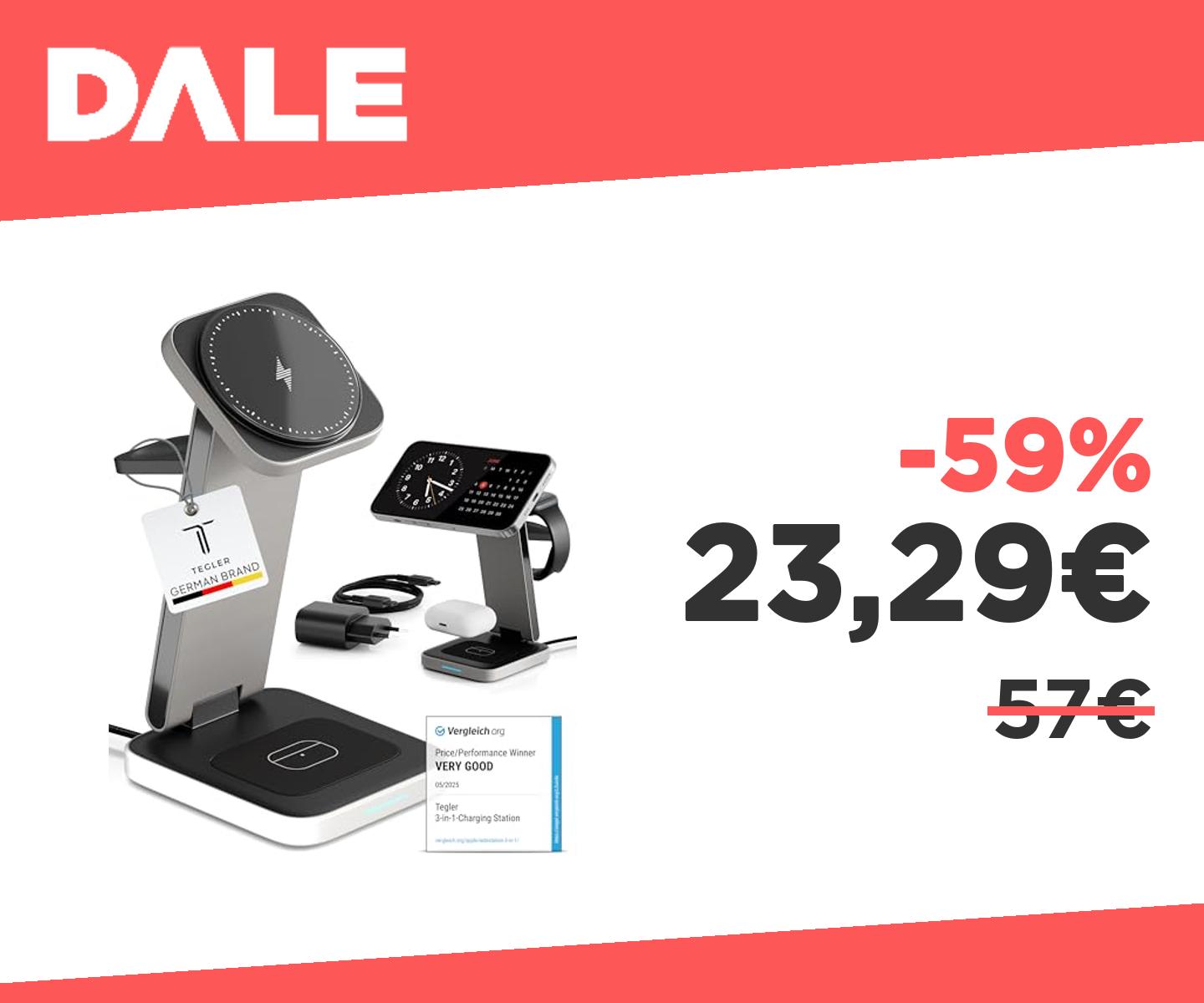 ๐ฃ TEGLER Caricatore Wireless iPhone 20W - 3 in 1, Pieghevole, Compatibile con MagSafe