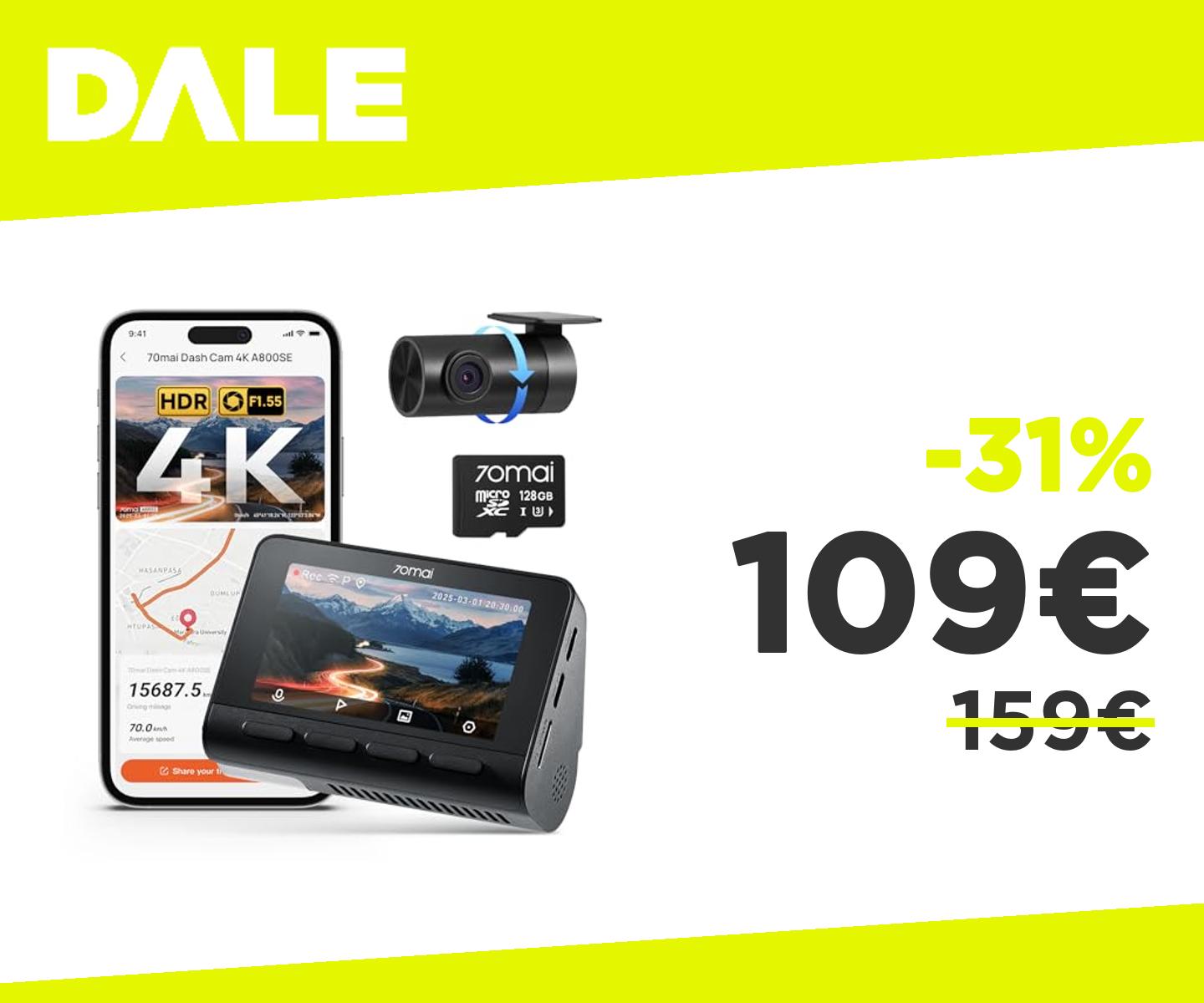 ๐๐ป 70mai A800SE Dashcam 4K GPS doppia, SD 128GB, WiFi, visione notturna