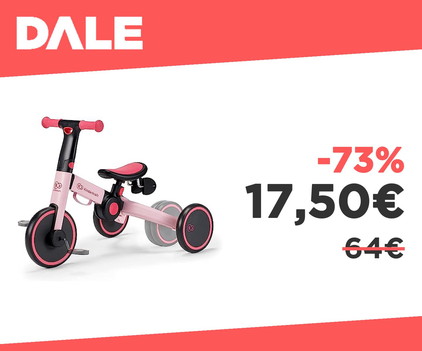 ๐ฃ Kinderkraft Triciclo 3in1 4TRIKE, Mini bici, Carrello, Sella regolabile, Pieghevole, da 12 mesi a 5 anni, Rosa