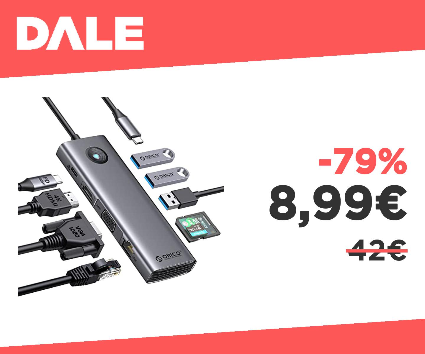 ๐ฃ ORICO -PW11-9P-GY-EP-EU ORICO USB C Docking Station, 9 in 1 USB C Dock con 1000 Mbps con HDMI 4K + PD100W + 3 x USB3.0 + Ethernet + SD/TF + VGA, adattatore USB C Multiporta